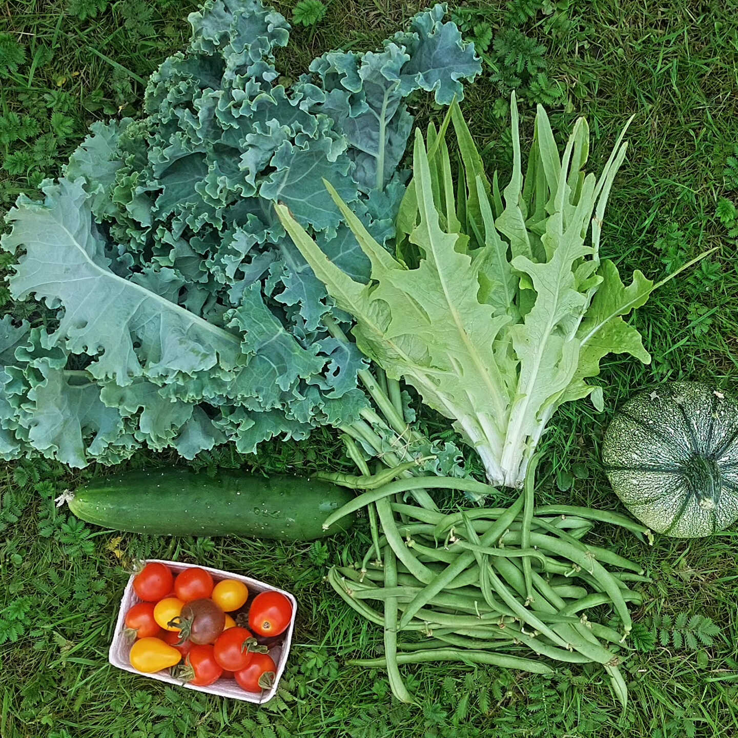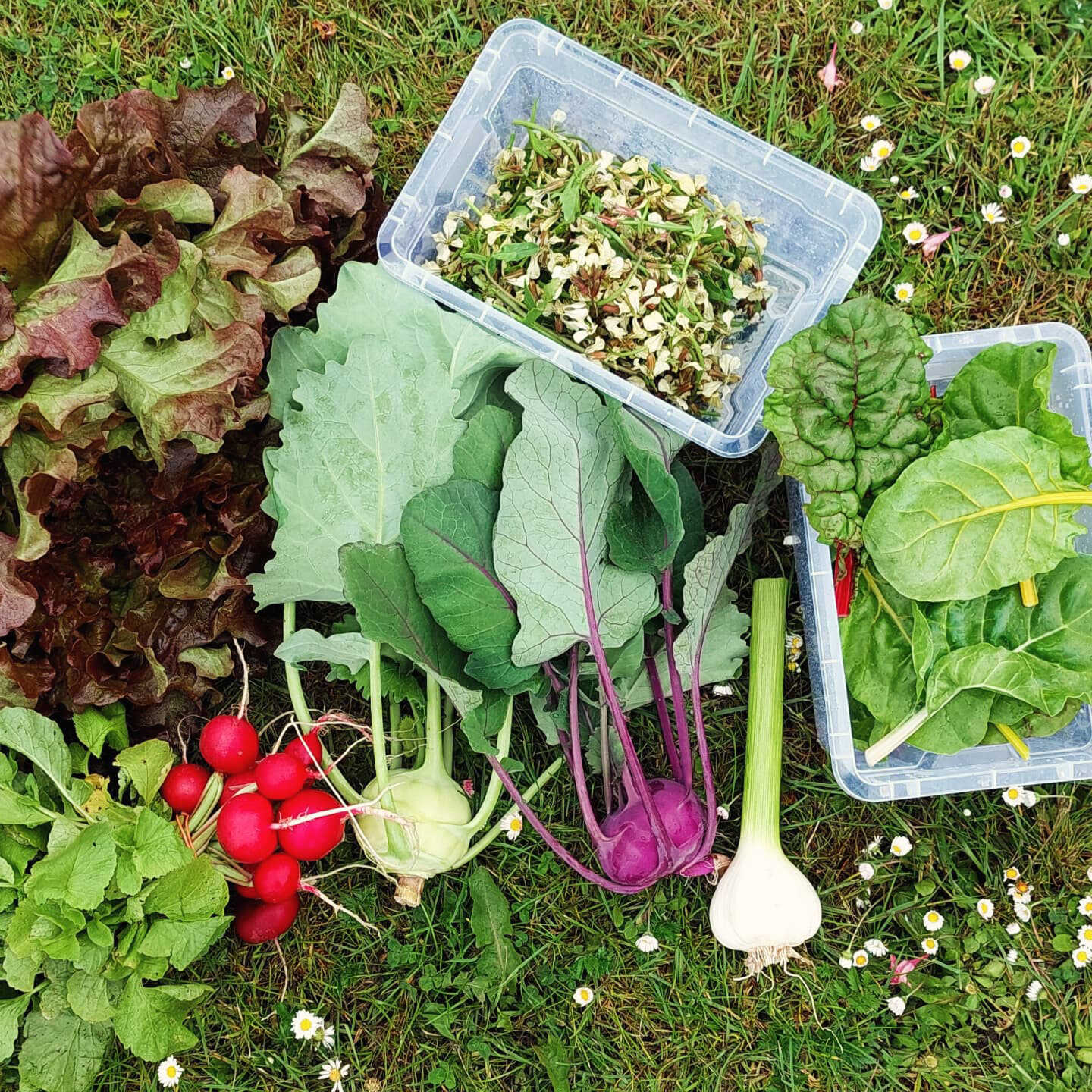 Wir ernten kurz vor der Abholung das Gemüse und bestücken deine Kiste.